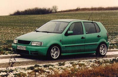 Bei diesem Polo stand ein wenig mehr auf dem Programm. Der Abstieg zum GTI durfte ja nicht zu groß werden. Also kam wieder einmal ein Spax-Fahrwerk mit Inter-Alloy-Federn rein. Und das erste Mal kamen auch andere Alufelgen zum Einsatz. Als sehr passend fand ich da die Steffan-Cup Felgen in 8x14 mit 195/45er Reifen. Für einen guten Klang sorgte ein RSL DTM-Endschalldämpfer und ein Gruppe-A Vorderrohr. Weil es mir aber zu laut war, kam der Vorschalldämpfer wieder rein und das Gruppe-A Rohr wieder raus.